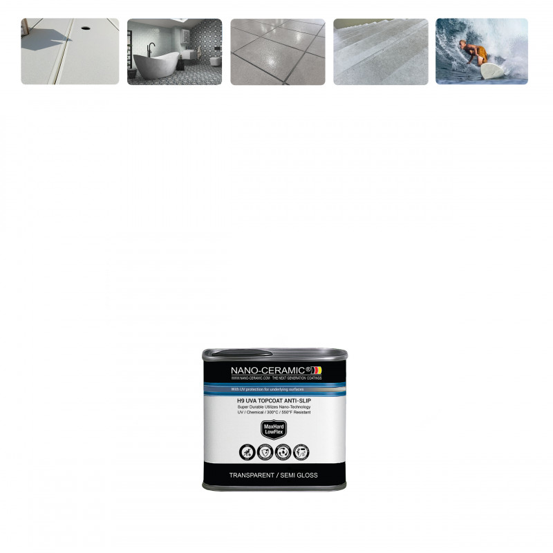 H9 SI74 UVA Topcoat dengan Teknologi Nano Anti-Slip membentuk lapisan pelindung yang padat, sangat keras, dan bersifat hidrofobik, yang dirancang khusus untuk permukaan halus dan licin. Sistem partikel nano yang dapat disemprot ini menghasilkan tekstur halus yang hampir tidak terlihat, memberikan efek anti-slip yang meningkatkan daya cengkeram tanpa mengubah kilap, kejernihan, atau tampilan asli permukaan.